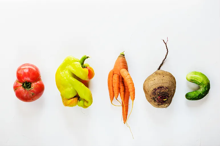 Pero todos podemos cambiar nuestras expectativas. Hasta ahora, las frutas y verduras 'feas' han sido rechazadas por los estrictos estándares de los minoristas, es decir, 50 millones de toneladas desechadas en Europa cada año. Pero los consumidores están comenzando a darse cuenta de esto, y más supermercados están ofreciendo frutas y verduras deformes a precios rebajados. 6