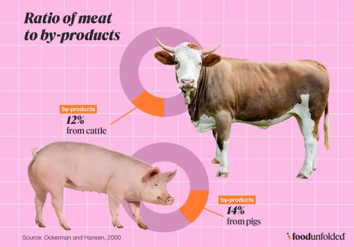 Animals are more than just the cuts of meat we see in supermarkets. Like humans, they have hearts, lungs, livers and other organs, skin, spinal columns, feet, heads, and hair. But what happens to these parts when an animal is slaughtered for human consumption?