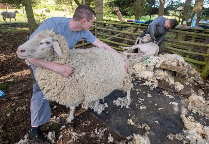 Sheep shearing in Usingen, Germany. A significant amount of sheep wool is burnt in Europe because it's not deemed good enough for fabric production. Photo via Getty.