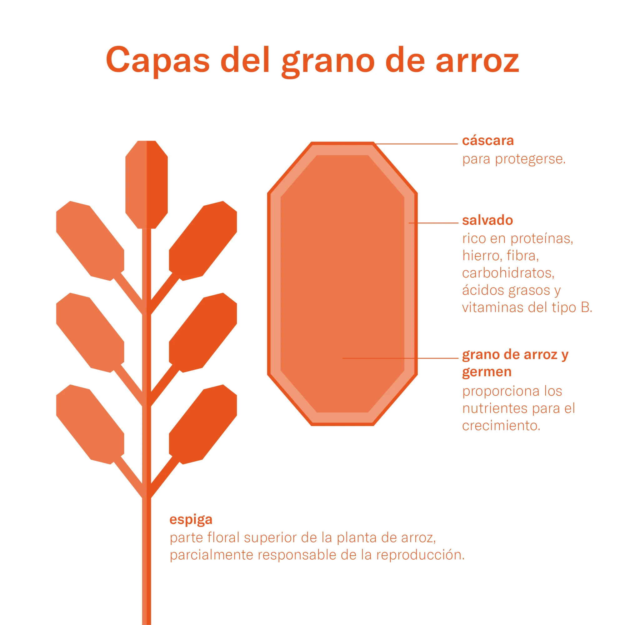 Dato curioso: ¿Alguna vez te has preguntado cuál es la diferencia entre el arroz integral y el blanco? Bueno, obtienes arroz integral cuando solo se quita la cáscara del grano, mientras que si los granos se muelen o pulen aún más para descartar las capas de salvado y cáscara obtienes arroz blanco. Es posible que también hayas oído hablar del arroz rojo y negro: son solo variedades de arroz con algunos pigmentos adicionales llamados antocianinas en su capa de salvado.10