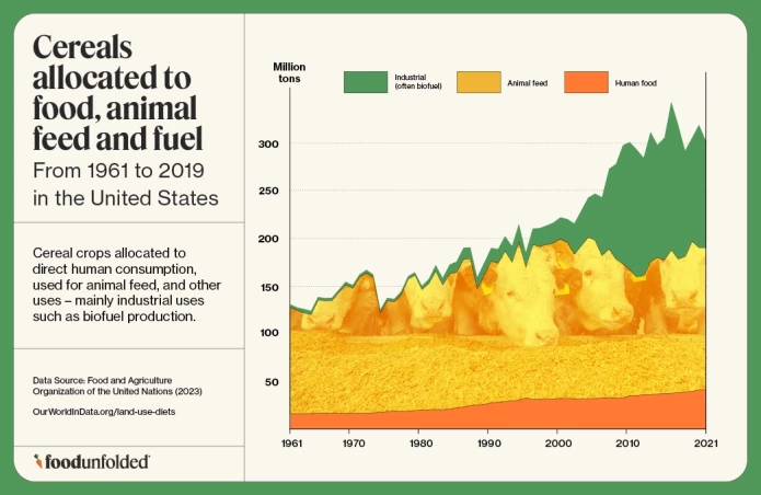 The global middle class is growing, and this exacerbates the problem. As incomes rise, more people seek animal-based products, convenient processed foods, and industrial products derived from crops, like biofuels, bioplastics, and pharmaceuticals. These trends impact food security, as many crops are now bred specifically for export, processing, and industrial purposes rather than direct consumption. For example, in the U.S., less than 1% of corn grown is sweet corn, the type we eat fresh, canned, or frozen. Most of the corn is “field corn,” which is used for biofuels, animal feed, and food additives—showing how agriculture has shifted to support industries beyond just food.11