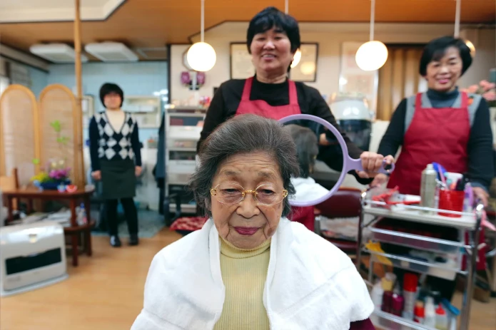 Masa Narita, a centenarian, gets her hair set by a hairdresser at a beauty salon near her house in Osaka, Japan. "Taking things easy is the key to longevity," Narita said. According to the Japanese Ministry of Health, Labor and Welfare nearly 90 percent of centenarians in Japan are women. Photo by Yuriko Nakao via Getty Images.