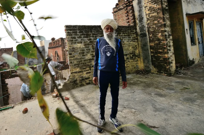 102-year-old marathon runner Fauja Singh at his house on March 20, 2014 in Jalandhar, India. Fauja Singh is an Indian centenarian marathon runner of Punjabi Sikh descent. He is a world record holder in his age bracket. Photo by Priyanka Parashar via Getty Images.