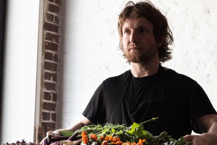 Left: Douglass McMaster, chef at London's Silo. Right: Japanese knotweed prepared at the restaurant. Photos via Douglass McMaster and Silo.