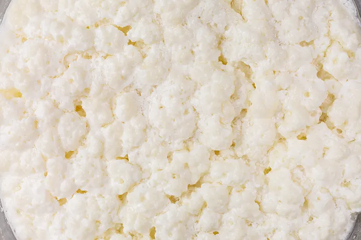 Beim Wachstum verbrauchen beide Bakterienstämme die in der Milch natürlich vorkommende Laktose und wandeln sie in Milchsäure um. Je mehr Laktose sie in Milchsäure umsetzen, desto saurer wird die Milch.2 Sobald sich die Säure entwickelt, beginnt das Kasein (das in Milch enthaltene Protein) zu verklumpen, wodurch sich die Konsistenz der Milch verändert und eine dicklichere Substanz entsteht: der Joghurt. Diese beiden Bakterienstämme im Joghurt verhindern tatsächlich das Wachstum anderer Bakterien, die normalerweise die Milch verderben würden. Aus diesem Grund ist die Fermentierung auch eine Art der Konservierung.