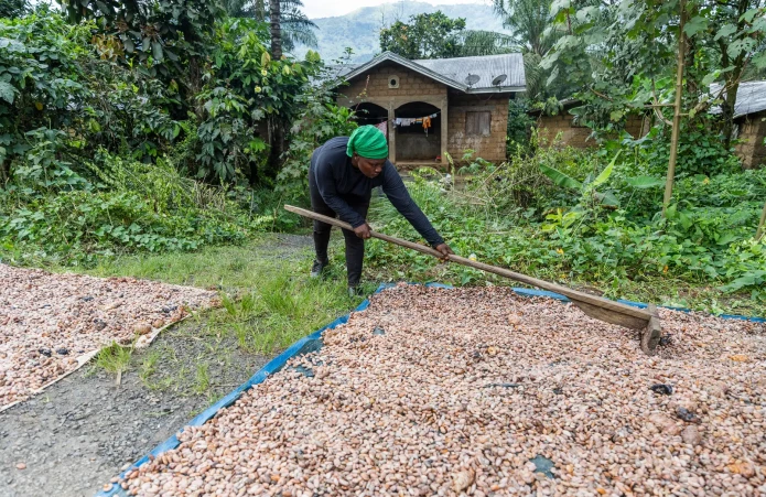 Da die Kakaobohnen von Hand geerntet werden, haben die meisten Kakaofarmen keinen Industrialisierungsprozess durchlaufen und sind von kleinen Familien und Gemeinschaften abhängig. Die Reinigung der Bohnen, der Fermentierungsprozess und die Trocknung werden fast immer von den Bäuer:innen selbst durchgeführt, die sich auch mit Wiederverkäufer:innen auseinandersetzen müssen, um ihre Ernte auf ausländische Märkte zu exportieren.