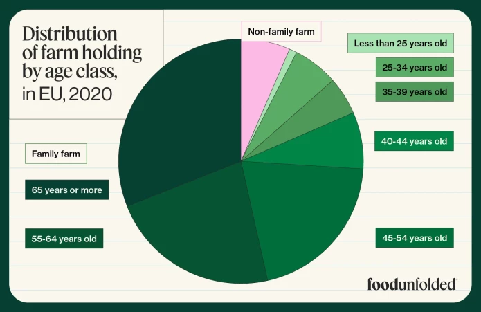 In the EU, 93,4% of the farms are still built on the traditional model of family farm. This farmmodel cultivates 61,4% of the EU’s utilised agricultural land, with one-third of the holders already in retirement age. Source: Eurostat.