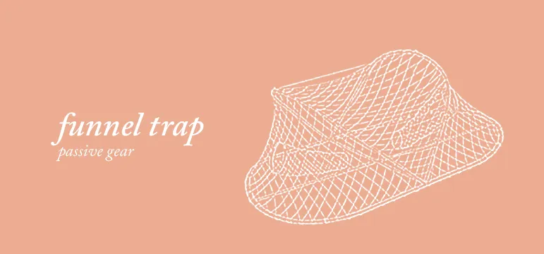 Passive gear (e.g. gill nets, trammel nets, traps, longlines) use traps, nets or lines with hooks anchored or left to drift in the water. This technique is widely used in European waters. Essentially, this technique passively catches fish rather than actively drawing them in.