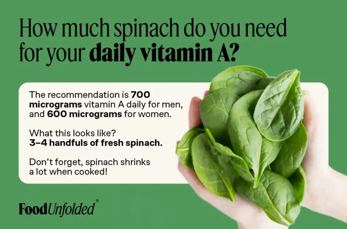 Spinach, kale, and other leafy greens are great sources of vitamin A and fibre. Vitamin A keeps the linings of your skin, gut, and lungs healthy — your first barrier against germs — while also supporting antibody production.1