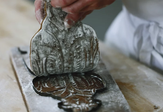 Traditionell wurde der weiche Teig in Holzformen gepresst, um ihn zu formen. Durch eine Änderung der Rezeptur wurde der Teig jedoch fester, so dass die Bäcker auf die Formen verzichteten und den Teig einfach in die gewünschten Formen schnitten. (Photo von Oliver Berg/picture alliance via Getty Images).