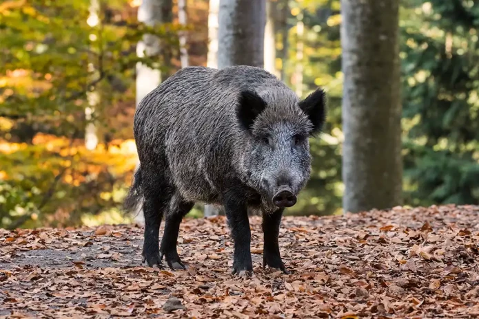 Wild boar in an autumn forest during the hunting season. Photo via Getty.