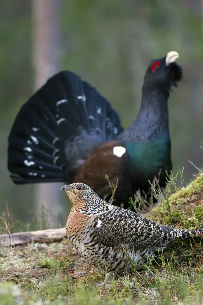The Western Capercaillie, a heavy member of the grouse family, is critically endangered in the Pyrenees. Photo via Getty.