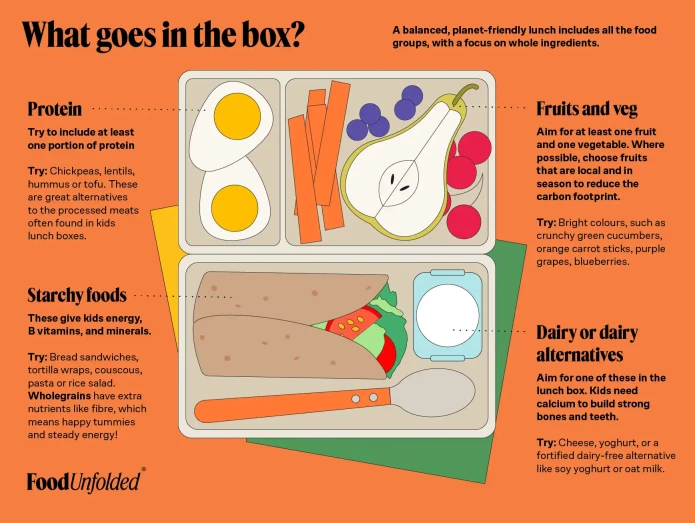 A balanced, eco-friendly lunch includes all the food groups, with a focus on whole and organic ingredients where possible. Here are some of the basic food groups that are important to have in your lunchbox.