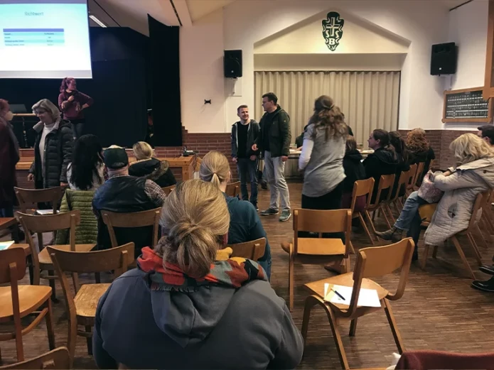 Das Ergebnis steht fest und Marie schnappt sich das Mikrofon. Im Saal wird es schlagartig ruhig. Vater Rudolf steht angespannt am Rand. Noch eine Stunde zuvor war er jedoch sehr optimistisch und zuversichtlich: “das wird schon klappen !“ Marie strahlt, als sie zu sprechen beginnt: „Ich freue mich sehr, es hat geklappt, wir haben die Summe erreicht, und das gleich beim ersten Mal !“. „Sogar ein Überschuss von über 2 Euro“, wirft Maries Mutter Ursula aus dem Hintergrund ein. Alle klatschen, die Freude ist überall spürbar, und gleichzeitig herrscht bei Marie und ihrem Kernteam auch eine übergroße Erleichterung. Noch eine Stunde lang wird Organisatorisches besprochen und alle Mitglieder:innen müssen ihre Verträge abgeben, aber der wichtigste Meilenstein ist geschafft: Noch in diesem Jahr will Marie mit ihrem Kernteam loslegen.