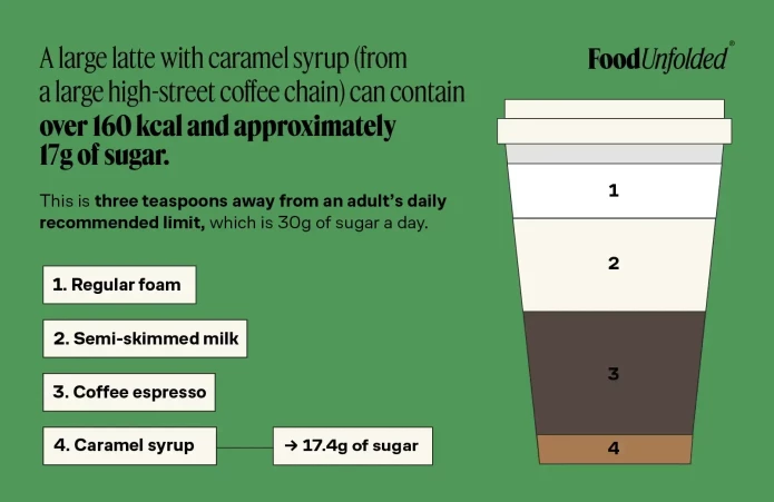 If we take, for example, a large milky coffee with an added syrup, it can contain a surprising number of calories — often more than we realise.