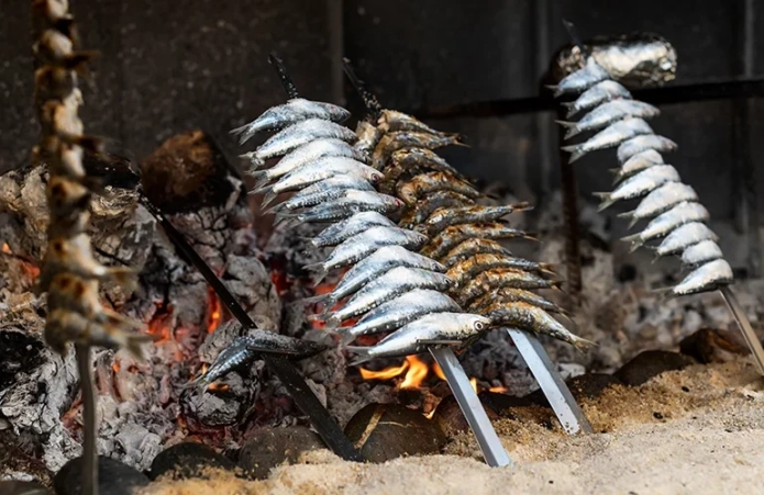 The sardine "espetos" (sardine skewers) cooked next to the embers are a typical food from Malaga in the south of Spain.