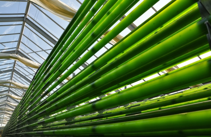 In wassergefüllten Röhren wachsen Mikroorganismen unter nahezu perfekten Bedingungen: CO2-Sättigung, Nährstoff- und Salz-Gehalt können hier präzise eingestellt werden.