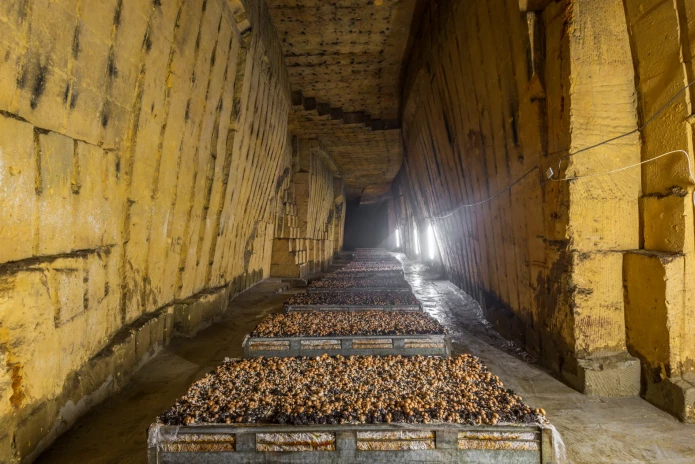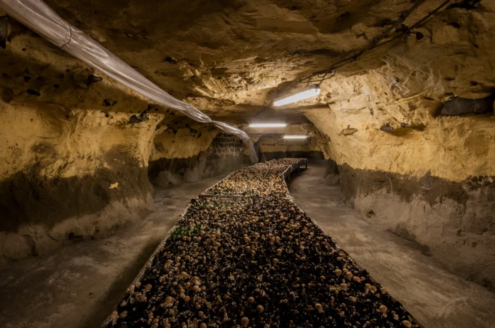 With the development of the Paris metro tunnels and the original quarries falling into disrepair, the cultivation of Paris' catacomb mushrooms declined, and very few producers remain today; none operate within the original quarries below the city.2 However, both in France and around the world, mushrooms continue to be cultivated in unusual subterranean locations; from historic natural caves, to abandoned underground urban carparks, and disused quarries. Those in the know believe the flavour of mushrooms grown in these locations is superior; the constant temperature and humidity as well as the fact that they grow 50% slower underground gives them a richer, more concentrated taste, with less water loss during cooking.4 Take a virtual trip with us below the surface to explore more…