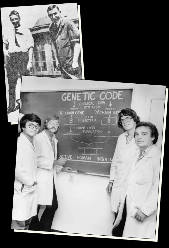 Top: Dr. Frederick Banting and Charles Best who, in 1921, successfully isolated the hormone insulin for the first time.