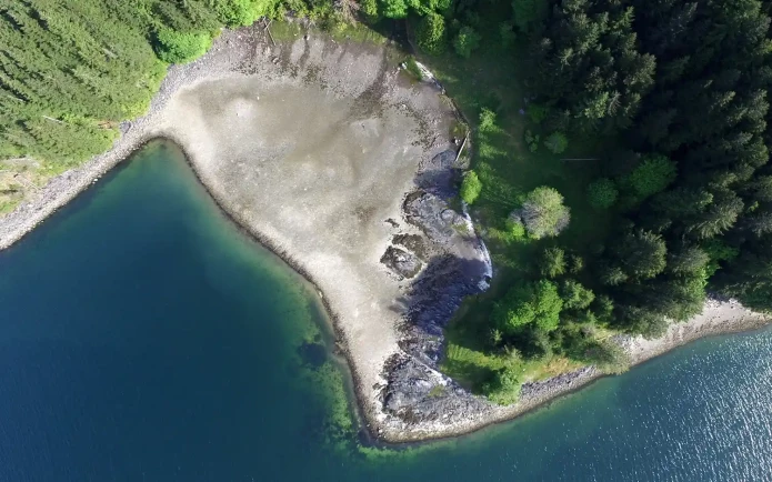 Clam garden shown from above. Quadra Island, British Colombia. Photo by Keith Holmes, Hakai Institute.