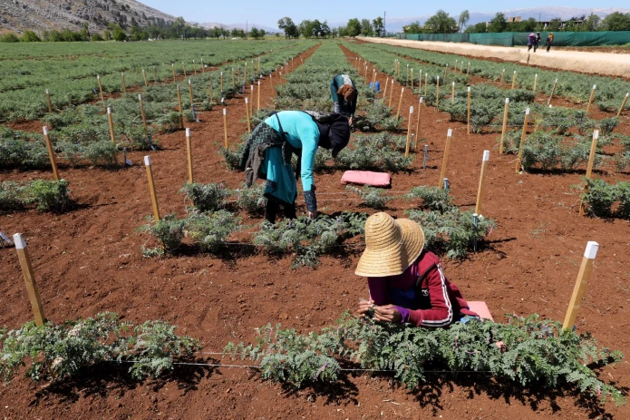 Cross breeding of chickpeas by ICRDA staff in Terbol village on May 10, 2022. (Photo by Marwan Tahtah/Getty images)