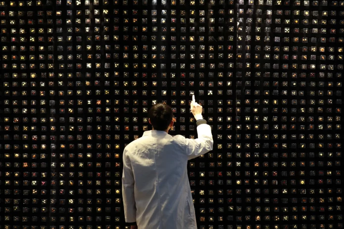 A Chinese researcher checks the specimen of plant seeds (Photo by Visual China Group via Getty Images)