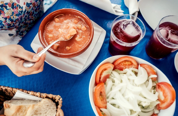 Across Europe, several countries have their own delicious take on chilled soups. In Poland, there is Chlodnik, a vibrant pink soup made with beetroot, sour cream, pickles, and sometimes shellfish. Meanwhile, in Bulgaria, summer heat is met with Tarator, a cool and creamy blend of cucumbers, garlic, yoghurt, dill, walnuts and water. These refreshing soups are light, creamy, and full of fresh summer vegetables.1