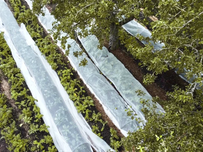 Even at this first stage, no spades are used on the soil: instead of digging down, they build up. After hand-picking out any weeds on the surface, a thick strip of cardboard is laid down. Then, a layer of that crucial compost (about 20 cm deep) is added, creating a raised bed. "The cardboard suppresses any dormant weeds from coming through the soil," Harrison explains. "Over the next two to three months, the cardboard layer mulches down and becomes part of the compost. At Worthy Earth, we use a great compost mix from Berkshire, composed of green waste from herbal leys and manure for extra fertility." During this time, the beds are covered with weighed-down tarpaulins, to generate the warm, humid conditions that promote decomposition.
