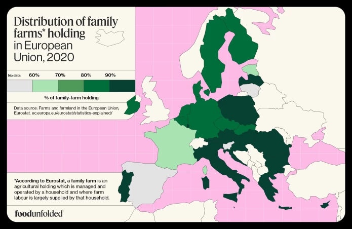 In the EU, 93,4% of the farms are still built on the traditional model of family farm. This farmmodel cultivates 61,4% of the EU’s utilised agricultural land, with one-third of the holders already in retirement age. Source: Eurostat.