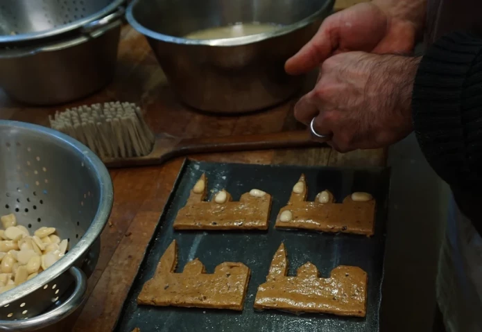 Traditionell wurde der weiche Teig in Holzformen gepresst, um ihn zu formen. Durch eine Änderung der Rezeptur wurde der Teig jedoch fester, so dass die Bäcker auf die Formen verzichteten und den Teig einfach in die gewünschten Formen schnitten. (Photo von Oliver Berg/picture alliance via Getty Images).